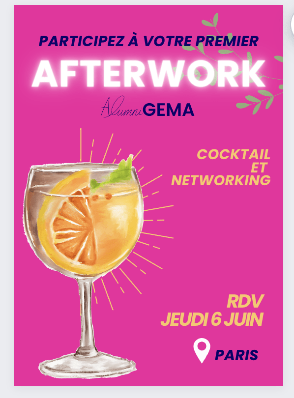 SAVE THE DATE !! Alumni GEMA est heureux de vous convier à son tout 1er évènement !RDV le Jeudi 6 Juin 2024, à Paris pour un AFTERWORK !Profitez de cette occasion pour retrouver vos anciens camarades de promo et aussi développer votre réseau.On vous attend nombreux pour faire de cet évènement le premier d'une longue série... Heure et adresse vous seront communiquées prochainement... Restez connectés !